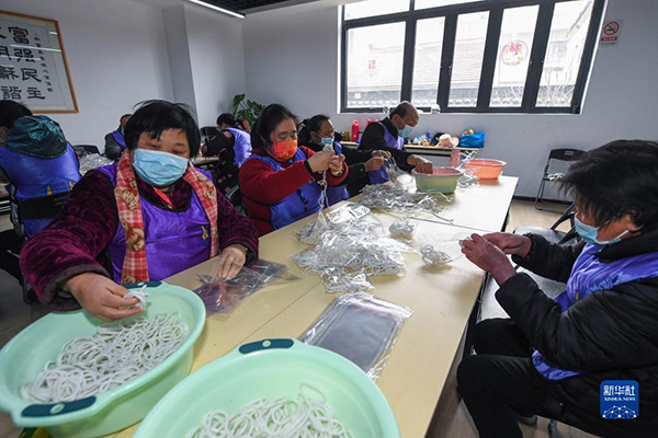 在浙江湖州市織里鎮(zhèn)港西村殘疾人之家,來(lái)自周邊的殘疾人正在打包配件(2022年2月22日攝)。完成工作后,他們可以獲得相應(yīng)報(bào)酬和補(bǔ)貼。新華社記者 徐昱 攝