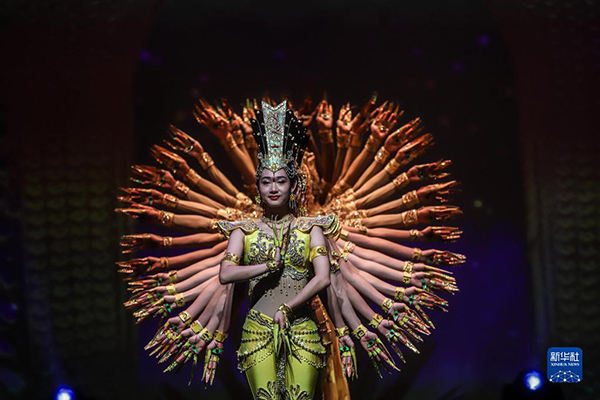 中國(guó)殘疾人藝術(shù)團(tuán)的演員在巴西圣保羅表演《千手觀音》(2019年11月6日攝)。新華社發(fā)(拉赫爾·帕特拉索 攝)