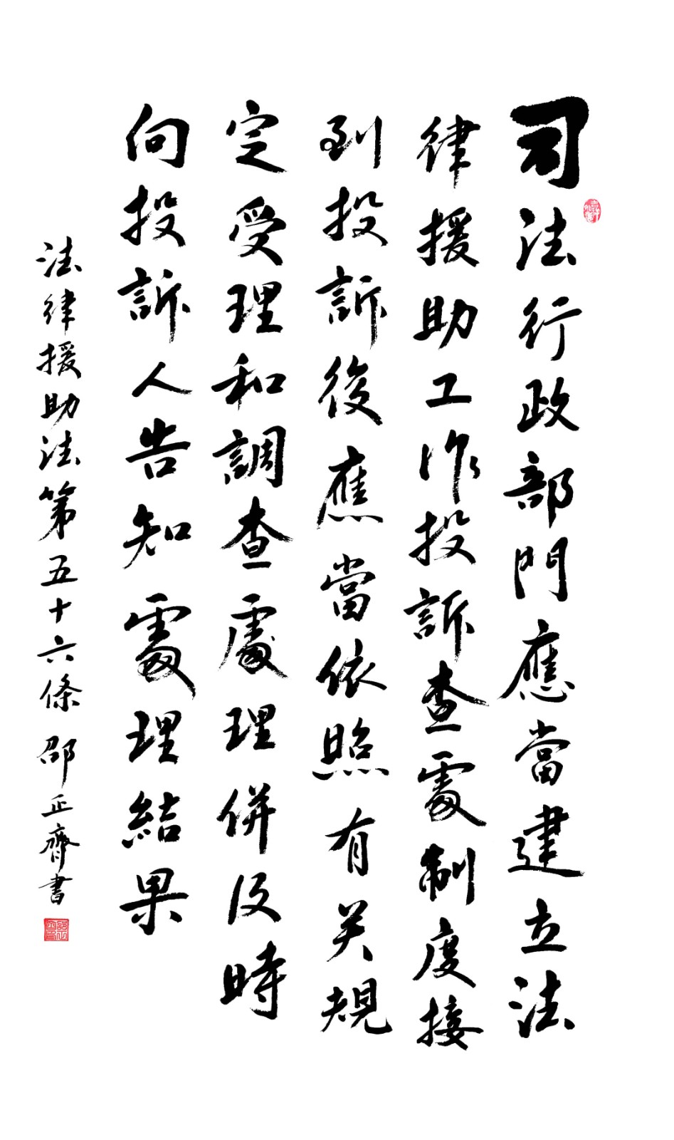 法律援助法第五十六條 司法行政部門應當建立法律援助工作投訴查處制度;接到投訴后,應當依照有關規(guī)定受理和調查處理,并及時向投訴人告知處理結果。