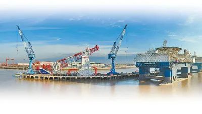 大型海工裝備“藍鯨一號”正在山東煙臺進行維護保養(yǎng)。
