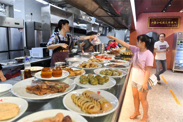 游客在三明市沙縣區(qū)的一家小吃店內(nèi)選購(gòu)品種豐富的沙縣小吃(2021年6月10日攝)。新華社記者林善傳攝