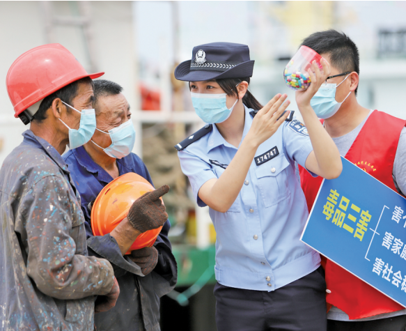 “6·26”國際禁毒日臨近,浙江省臺州市路橋區(qū)金清鎮(zhèn)禁毒辦把六月定為“禁毒宣傳月”,組織公安民警、禁毒社工等進村居、企業(yè)、學校、碼頭開展禁毒宣傳,普及禁毒法規(guī),共筑禁毒長城。圖為6月8日,金清派出所民警在漁港碼頭向休漁期維修漁船和織網補網的漁民宣傳毒品危害及禁毒法規(guī)。