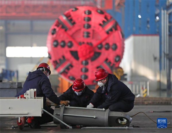 工人在沈陽北方重工集團(tuán)有限公司盾構(gòu)機(jī)分廠車間工作(2020年2月10日攝)。 新華社記者 楊青 攝