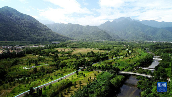這是陜西省西安市長安區(qū)秦嶺違建別墅“群賢別業(yè)”拆除后建設(shè)的秦嶺和諧森林公園(2019年7月26日攝,無人機(jī)照片)。新華社記者 劉瀟 攝