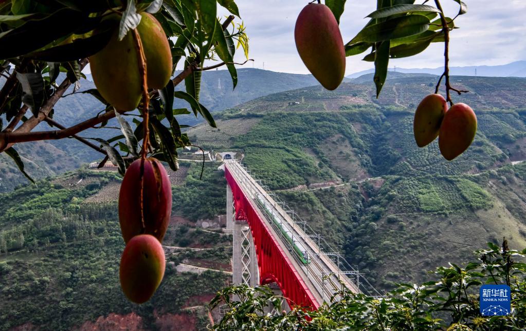 復(fù)興號(hào)列車通過(guò)中老鐵路元江特大橋(2022年6月1日攝)。新華社記者 江文耀 攝