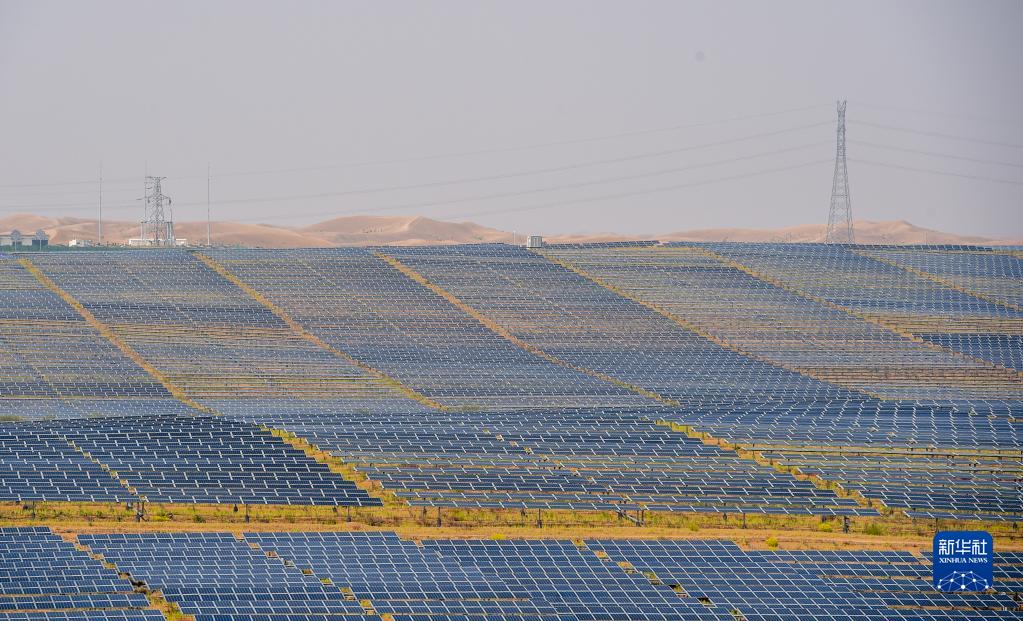 這是位于內(nèi)蒙古庫布其沙漠中的光伏發(fā)電基地(2020年9月14日攝)。新華社記者 連振 攝