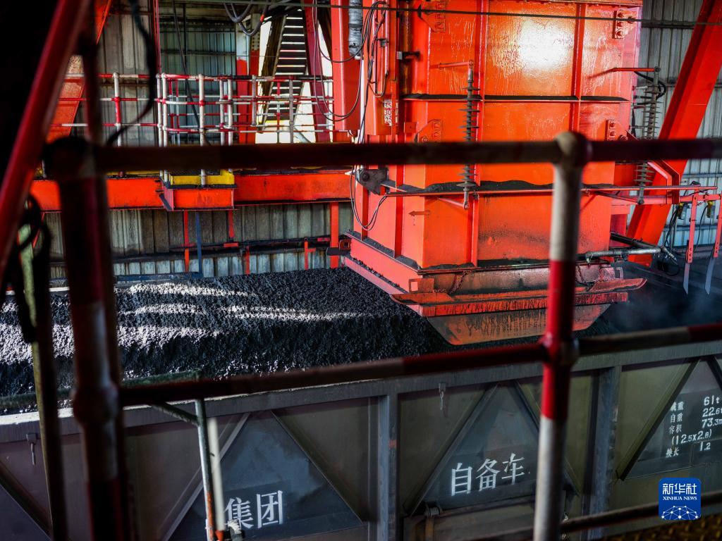 在內(nèi)蒙古鄂爾多斯市國能神東煤炭洗選中心,煤炭被洗選裝車(2021年12月16日攝)。新華社記者 連振 攝