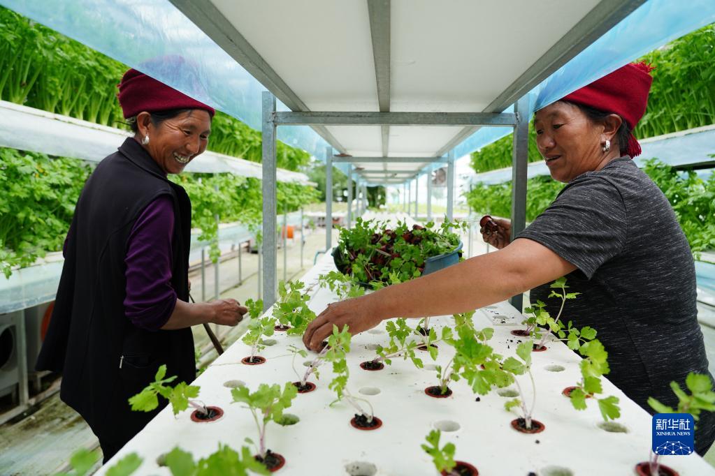 四川省昭覺縣四開鎮(zhèn)好谷村涪昭現(xiàn)代農(nóng)業(yè)產(chǎn)業(yè)園內(nèi),農(nóng)戶在進行芹菜苗移栽(2022年6月18日攝)。新華社記者 劉瓊 攝