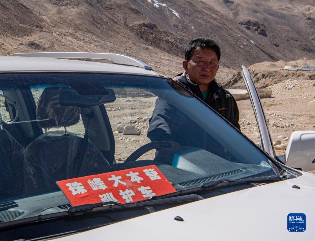拉巴次仁駕駛巡護(hù)車在珠穆朗瑪峰國(guó)家級(jí)自然保護(hù)區(qū)內(nèi)巡邏(2020年5月15日攝)。新華社記者 孫非 攝