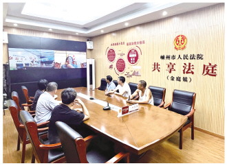 圖為2022年8月5日,紹興嵊州金庭鎮(zhèn)當(dāng)事人在“共享法庭”與法官遠程連線,在線化解糾紛。 紹興中院供圖