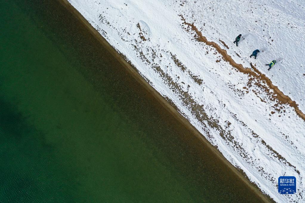 在青海省果洛藏族自治州瑪多縣扎陵湖鄉(xiāng)勒那村,三江源國(guó)家公園黃河源園區(qū)生態(tài)管護(hù)員在巡護(hù)(2021年10月20日攝,無人機(jī)照片)。 新華社記者 張龍 攝