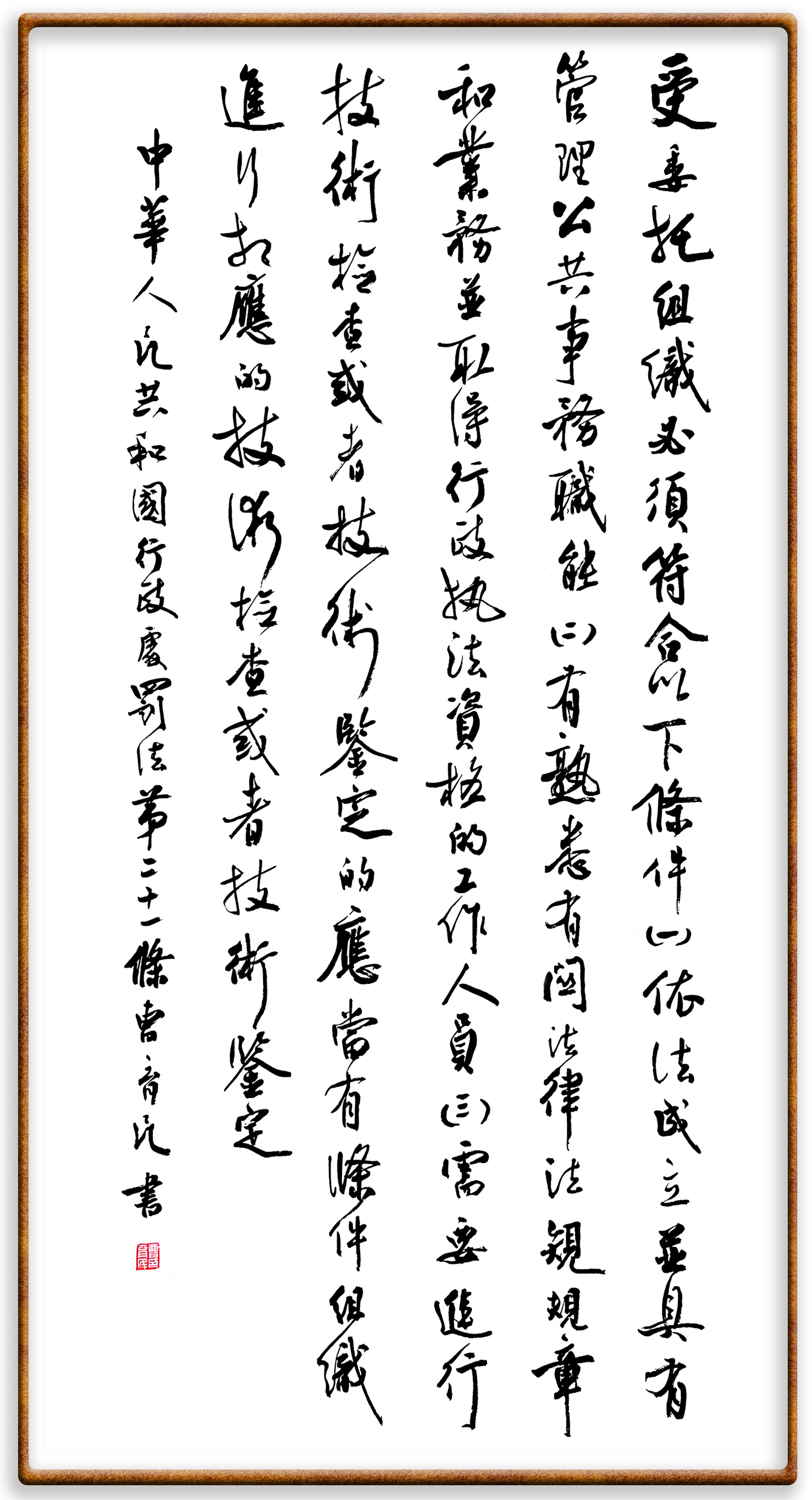 繼《中華人民共和國民法典》《中華人民共和國土地管理法》《中華人民共和國土地管理法實施條例》《中華人民共和國法律援助法》之后,法治日報社聯(lián)合北京市司法局、北京市書法家協(xié)會,將筆端對準(zhǔn)《中華人民共和國憲法》和《中華人民共和國行政處罰法》。
