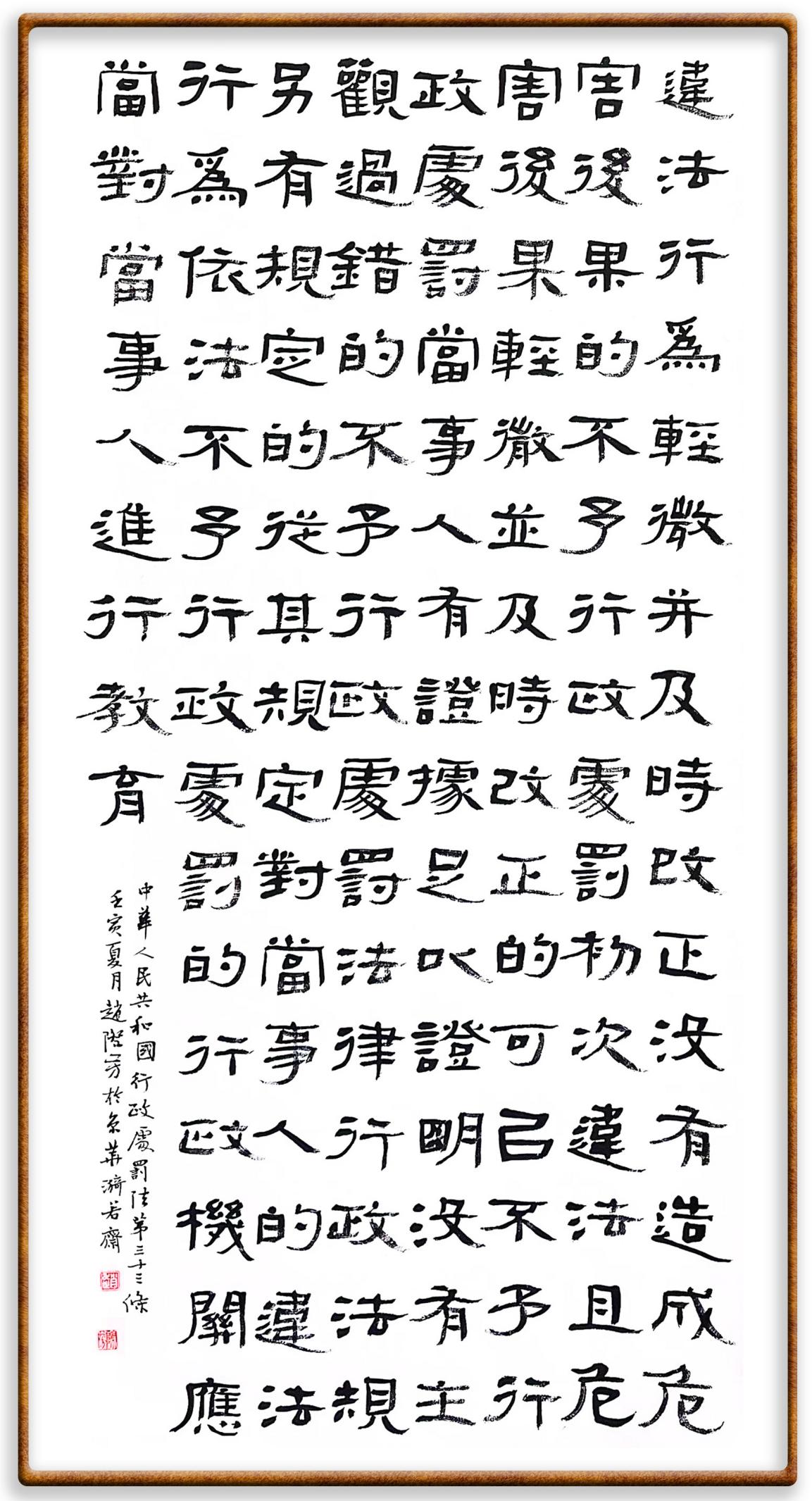 繼《中華人民共和國民法典》《中華人民共和國土地管理法》《中華人民共和國土地管理法實(shí)施條例》《中華人民共和國法律援助法》之后,法治日報社聯(lián)合北京市司法局、北京市書法家協(xié)會,將筆端對準(zhǔn)《中華人民共和國憲法》和《中華人民共和國行政處罰法》。