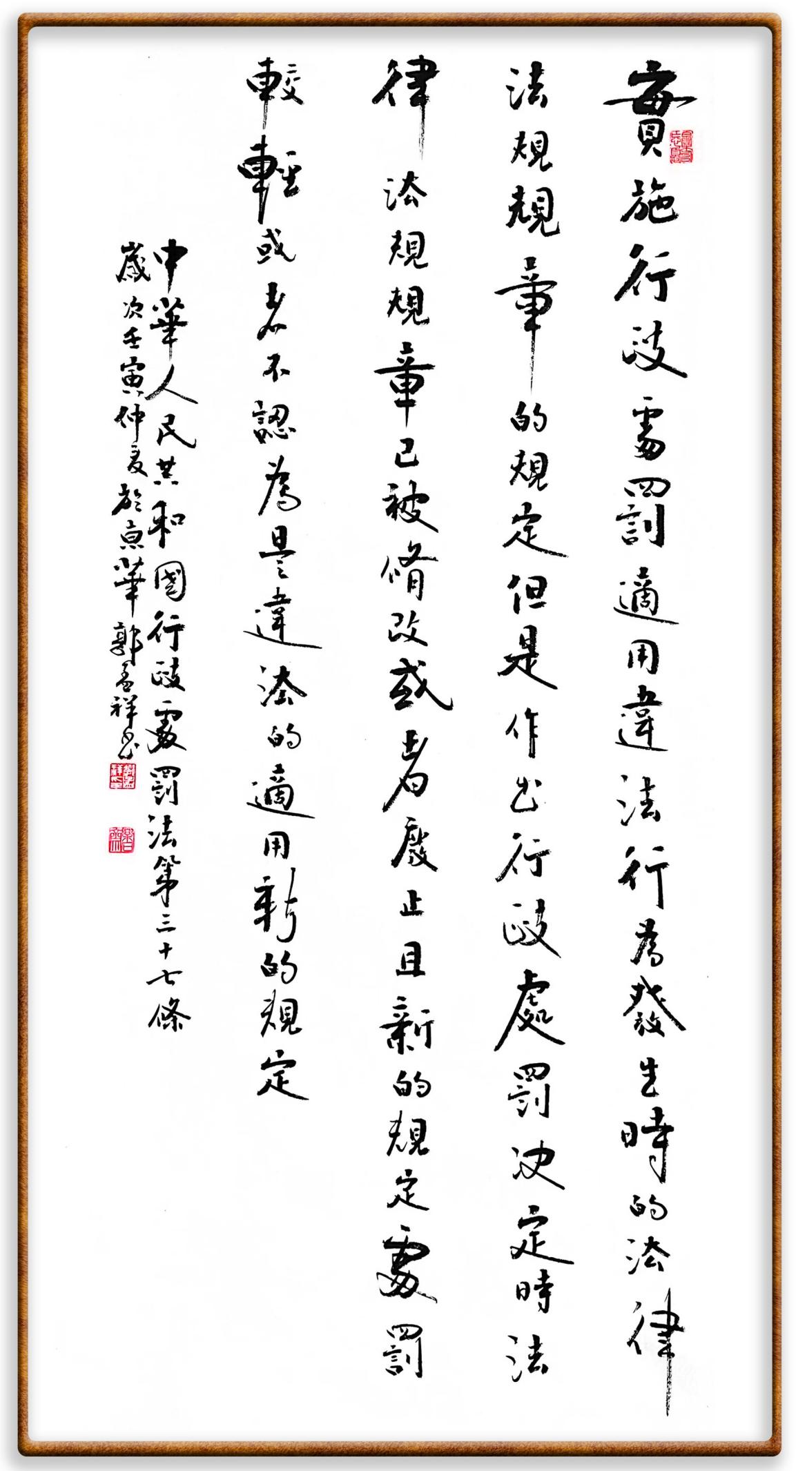 繼《中華人民共和國(guó)民法典》《中華人民共和國(guó)土地管理法》《中華人民共和國(guó)土地管理法實(shí)施條例》《中華人民共和國(guó)法律援助法》之后,法治日?qǐng)?bào)社聯(lián)合北京市司法局、北京市書法家協(xié)會(huì),將筆端對(duì)準(zhǔn)《中華人民共和國(guó)憲法》和《中華人民共和國(guó)行政處罰法》。