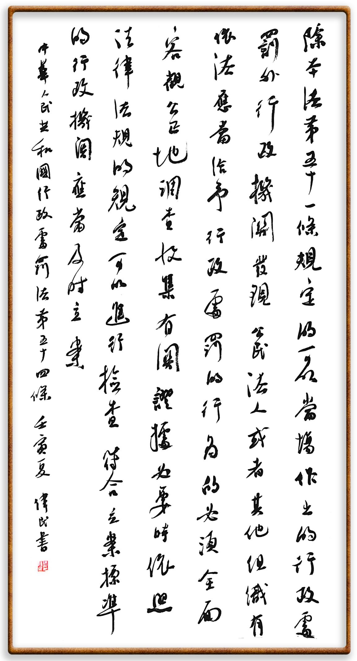 繼《中華人民共和國(guó)民法典》《中華人民共和國(guó)土地管理法》《中華人民共和國(guó)土地管理法實(shí)施條例》《中華人民共和國(guó)法律援助法》之后,法治日?qǐng)?bào)社聯(lián)合北京市司法局、北京書(shū)法家協(xié)會(huì),將筆端對(duì)準(zhǔn)《中華人民共和國(guó)憲法》和《中華人民共和國(guó)行政處罰法》。