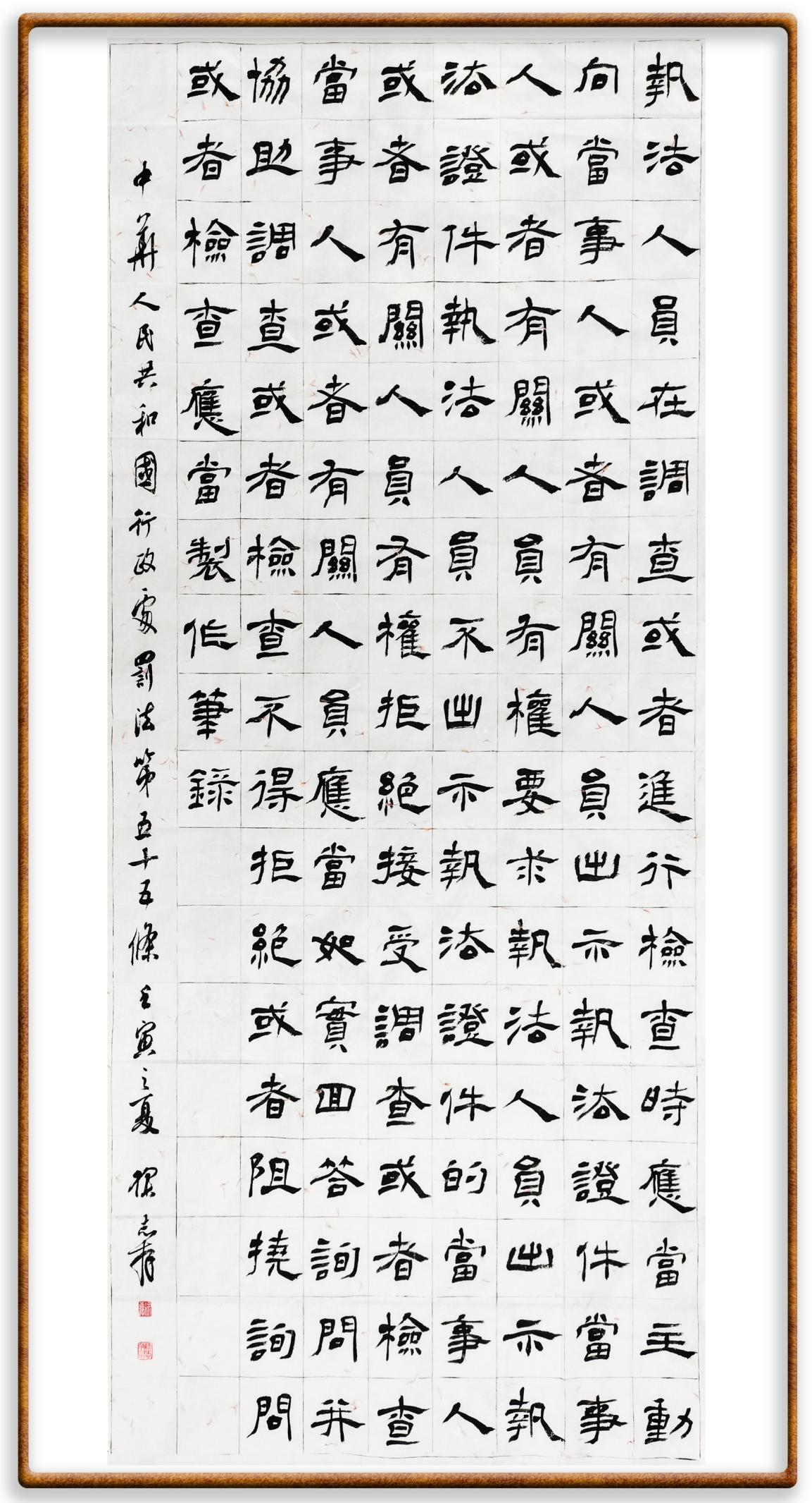 繼《中華人民共和國民法典》《中華人民共和國土地管理法》《中華人民共和國土地管理法實施條例》《中華人民共和國法律援助法》之后,法治日報社聯(lián)合北京市司法局、北京書法家協(xié)會,將筆端對準(zhǔn)《中華人民共和國憲法》和《中華人民共和國行政處罰法》。