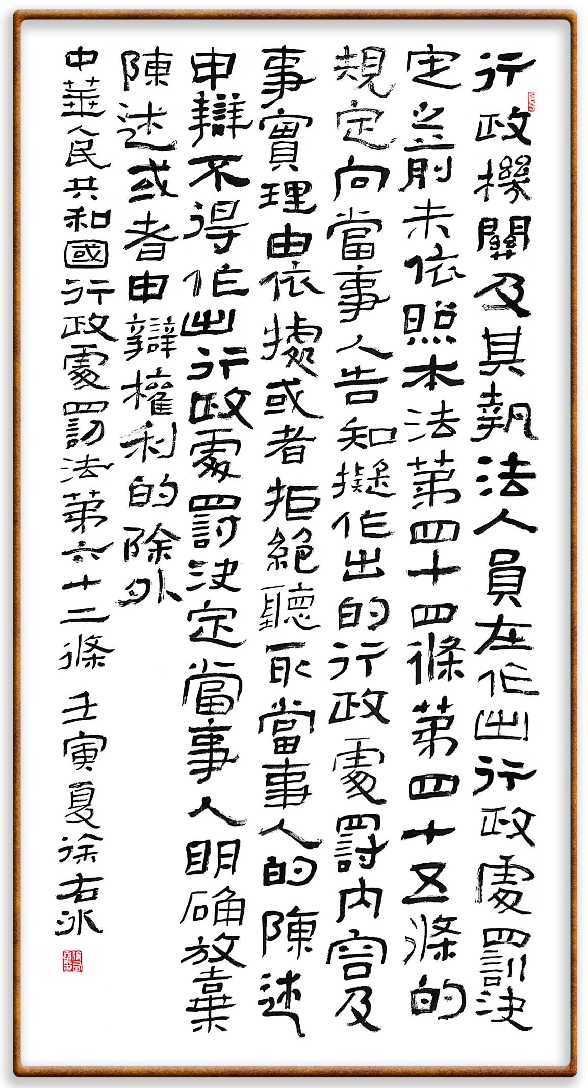 繼《中華人民共和國民法典》《中華人民共和國土地管理法》《中華人民共和國土地管理法實(shí)施條例》《中華人民共和國法律援助法》之后,法治日報社聯(lián)合北京市司法局、北京書法家協(xié)會,將筆端對準(zhǔn)《中華人民共和國憲法》和《中華人民共和國行政處罰法》。