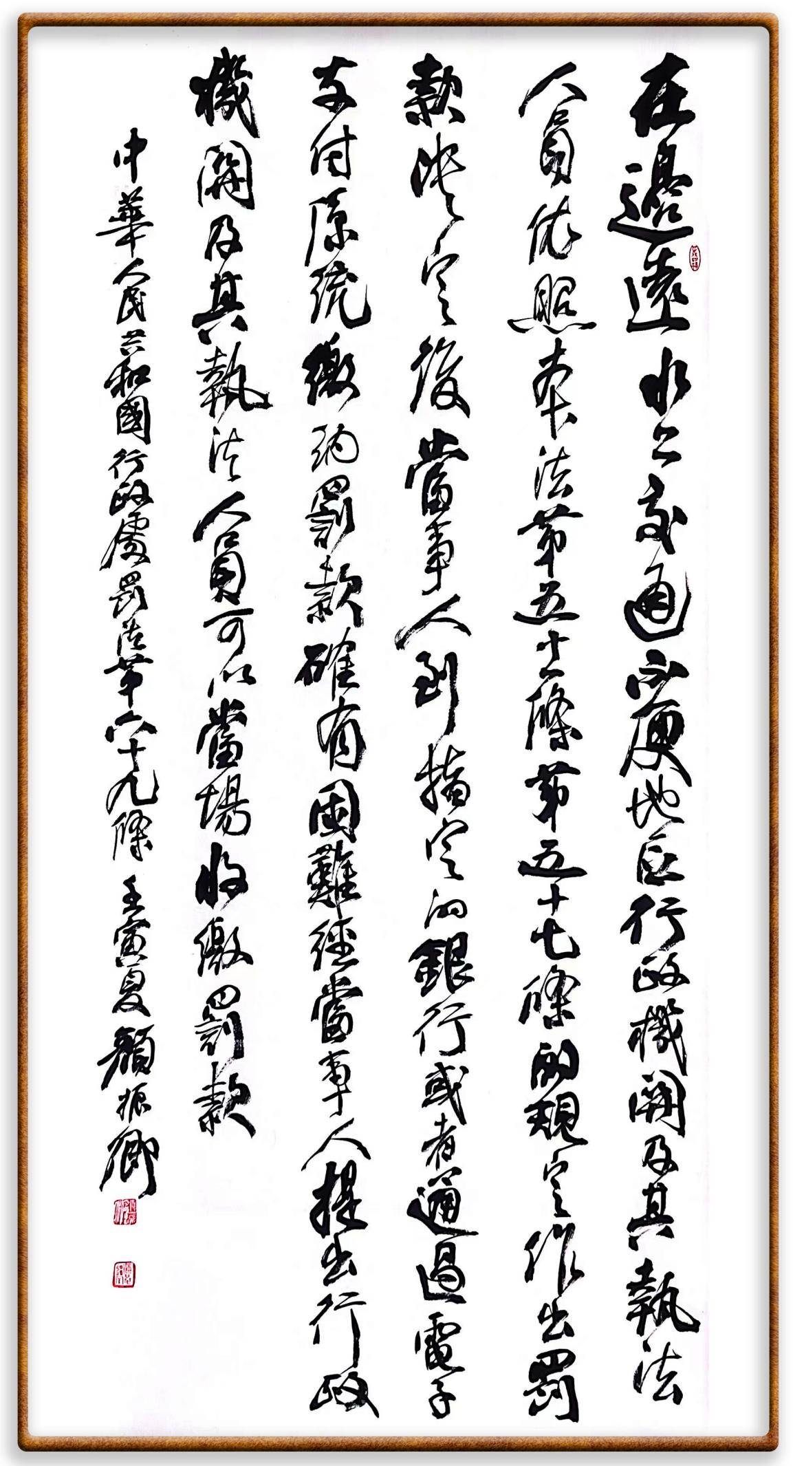 繼《中華人民共和國(guó)民法典》《中華人民共和國(guó)土地管理法》《中華人民共和國(guó)土地管理法實(shí)施條例》《中華人民共和國(guó)法律援助法》之后,法治日?qǐng)?bào)社聯(lián)合北京市司法局、北京書(shū)法家協(xié)會(huì),將筆端對(duì)準(zhǔn)《中華人民共和國(guó)憲法》和《中華人民共和國(guó)行政處罰法》。
