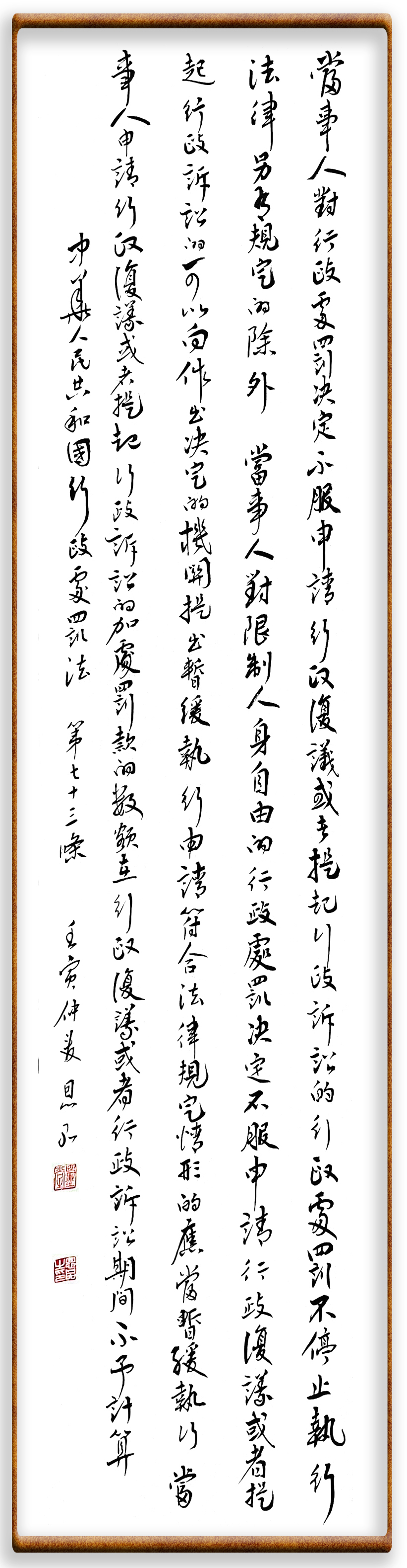繼《中華人民共和國(guó)民法典》《中華人民共和國(guó)土地管理法》《中華人民共和國(guó)土地管理法實(shí)施條例》《中華人民共和國(guó)法律援助法》之后,法治日?qǐng)?bào)社聯(lián)合北京市司法局、北京書(shū)法家協(xié)會(huì),將筆端對(duì)準(zhǔn)《中華人民共和國(guó)憲法》和《中華人民共和國(guó)行政處罰法》。