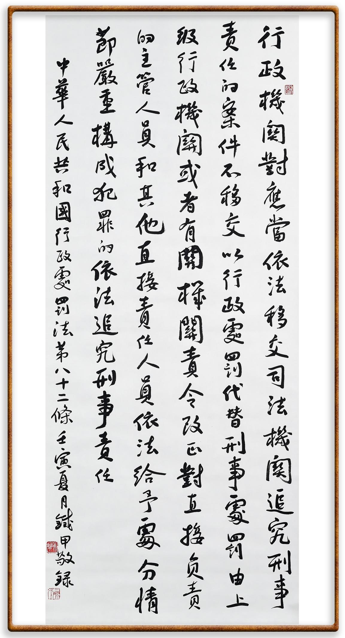 繼《中華人民共和國民法典》《中華人民共和國土地管理法》《中華人民共和國土地管理法實施條例》《中華人民共和國法律援助法》之后,法治日報社聯(lián)合北京市司法局、北京書法家協(xié)會,將筆端對準《中華人民共和國憲法》和《中華人民共和國行政處罰法》。