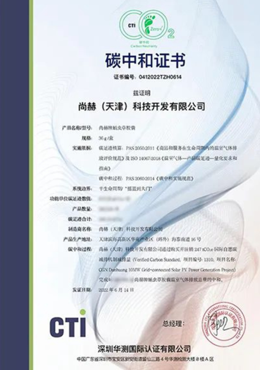 2022年6月,尚赫牌蛹蟲草膠囊獲得“碳中和”認證證書,該認證由中國合格評定國家認可委員會(CNAS)認可的第三方認證機構(gòu),按照國際通用標準,對尚赫牌蛹蟲草膠囊的產(chǎn)品碳足跡(半生命周期)進行評價分析,尚赫牌蛹蟲草膠囊也成為營養(yǎng)健康行業(yè)內(nèi)首個獲得“碳中和”認證的保健食品。