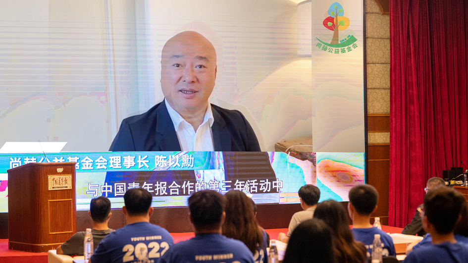 尚赫公益基金會理事長陳以勳在“校媒記者訓練營”活動中與學子們在線交流