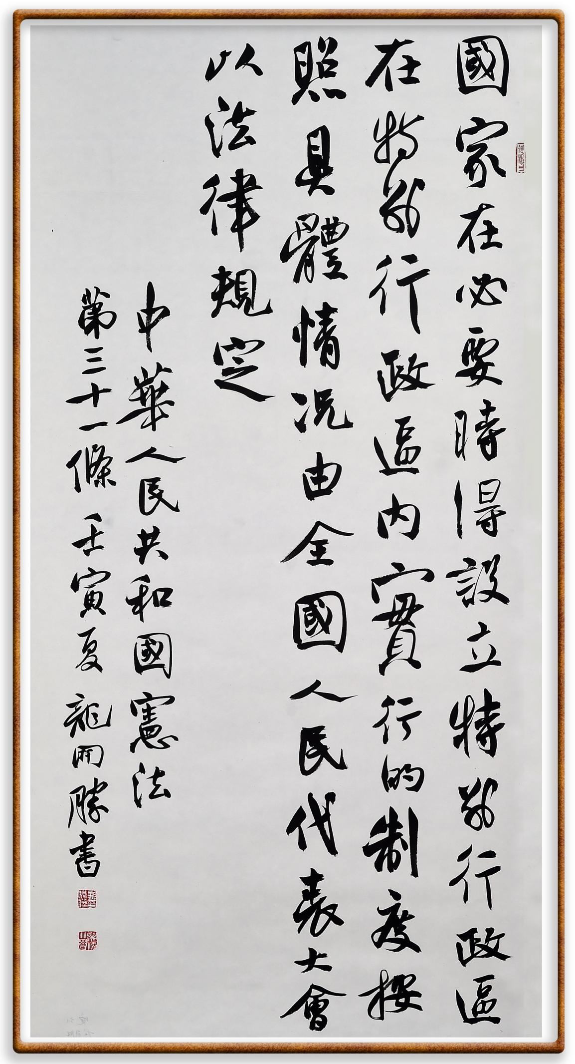 繼《中華人民共和國(guó)民法典》《中華人民共和國(guó)土地管理法》《中華人民共和國(guó)土地管理法實(shí)施條例》《中華人民共和國(guó)法律援助法》之后,法治日?qǐng)?bào)社聯(lián)合北京市司法局、北京書法家協(xié)會(huì),將筆端對(duì)準(zhǔn)《中華人民共和國(guó)憲法》和《中華人民共和國(guó)行政處罰法》。