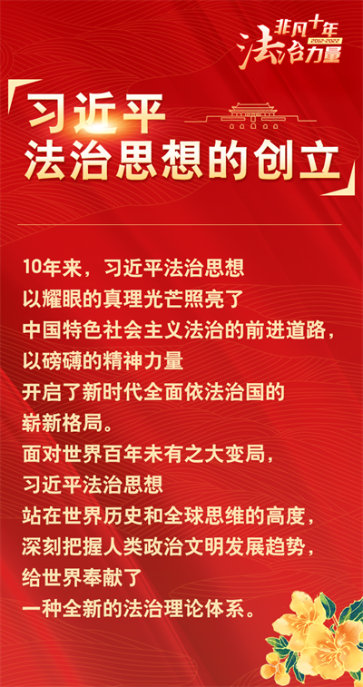 法治網(wǎng)精心策劃制作十期海報,帶您一起領(lǐng)略非凡十年的法治力量!今天為您奉上第一期“習(xí)近平法治思想的創(chuàng)立”。
