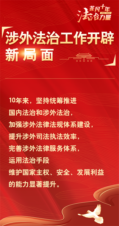 法治網(wǎng)精心策劃制作十期海報,帶您一起領(lǐng)略非凡十年的法治力量!今天為您奉上第八期“涉外法治工作開辟新局面”。