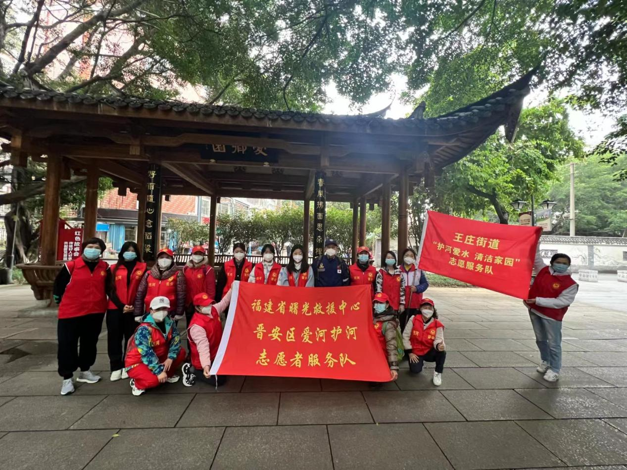 圖為福建省曙光救援中心組織社會志愿者們清潔晉安河沿線